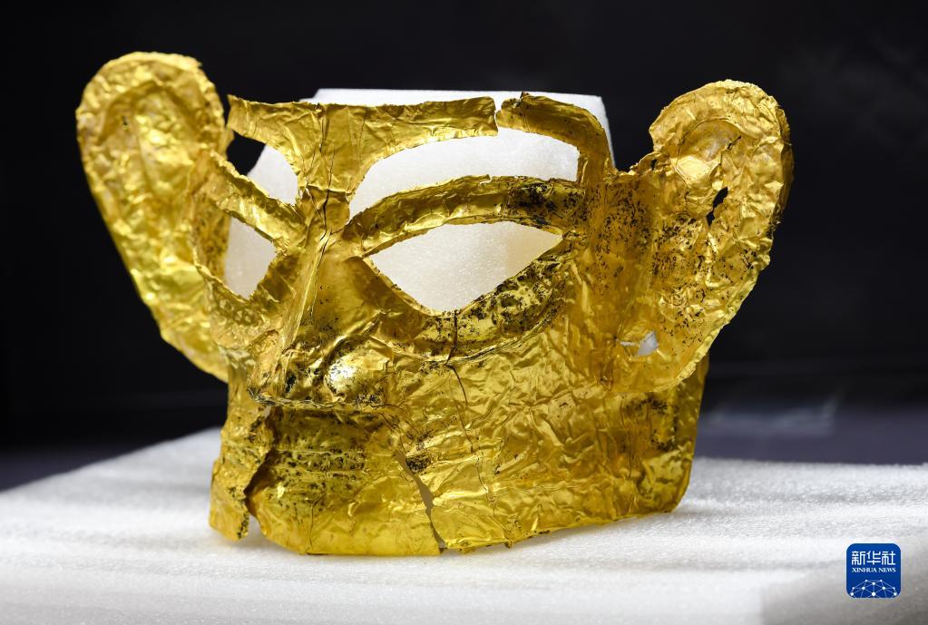 9月9日,四川省文物考古研究院公布了一批三星堆考古最新发现,大大小小的文物中一张完整的黄金面具格外引人注目。
