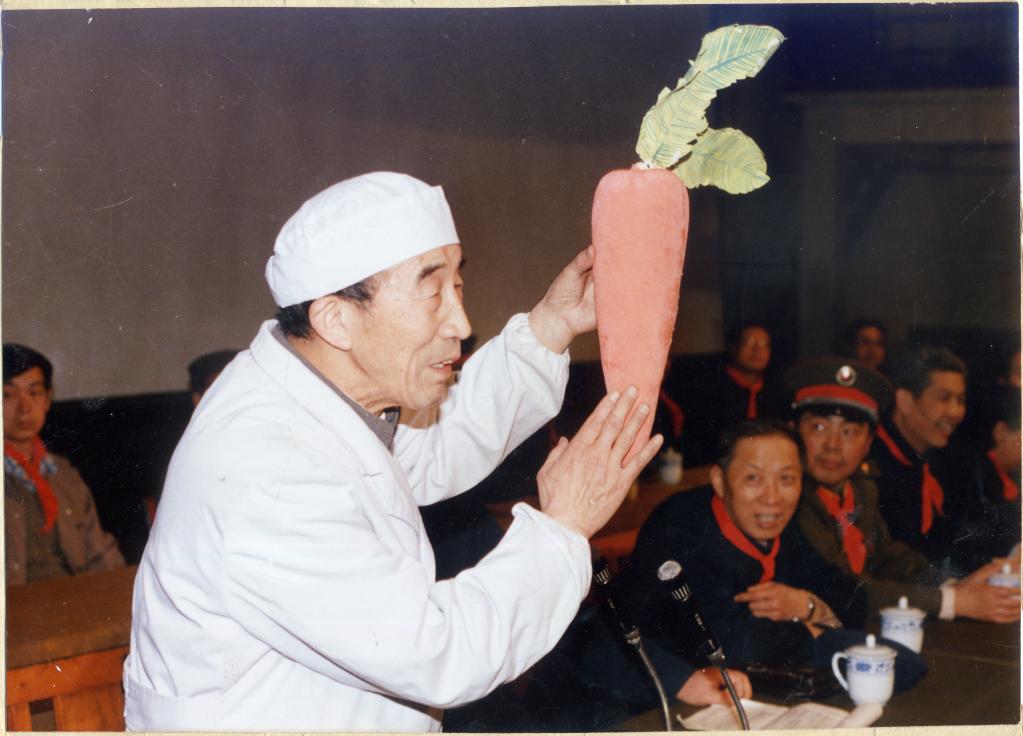 1993年铁一院卫生科开展“保护六龄牙”,白成平医生向小学生宣传、示范刷牙。(受访者供图)