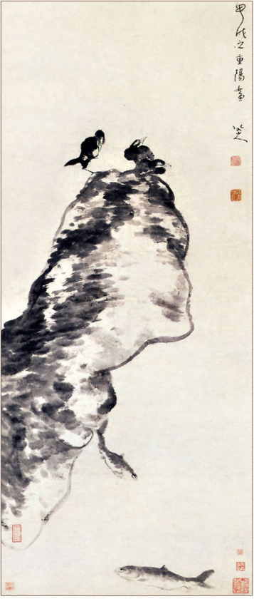 “八大山人”原名朱耷,是明朝宗室,明亡后遁入空门,以书画自娱。55岁时还俗入世,选择书画作为自己的归宿。其作品笔情恣纵,不拘成法,画面简洁,冷逸空灵,蕴含丰富的哲学思想,对后世画坛影响持续至今。