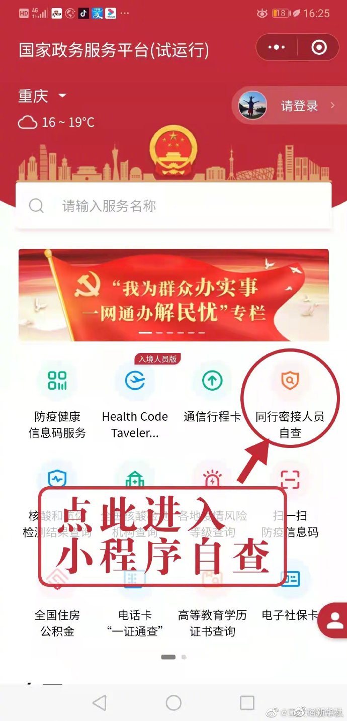 情况通报说,“同行密接人员自查”小程序是国家政务服务平台和国家卫健委联合推出的正规查询渠道,依托国家“互联网+监管”系统汇聚的权威数据,登录验证后可查询自己14天内搭乘交通工具出行是否与确诊、疑似患者同行密切接触。 网传重庆市公安局发布紧急通知称“国家政务服务平台同行密接人员自查小程序要求输入支付密码,重庆已有人被骗”系谣言,警方吁请广大网友不信谣不传谣。
