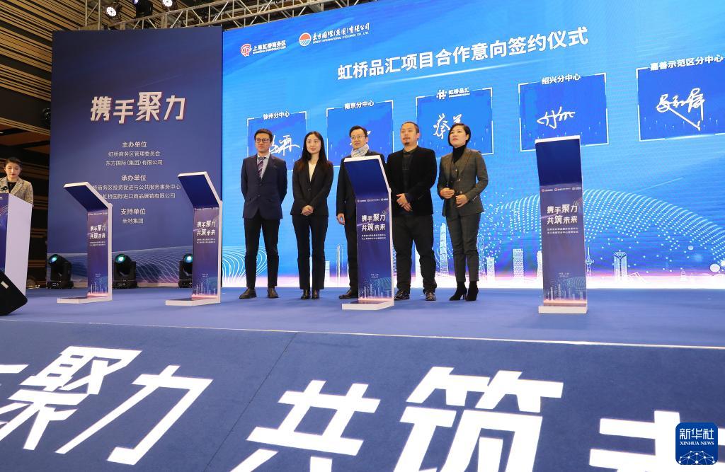 2020年12月30日,虹桥进口商品展示交易中心长三角城市分中心授牌仪式在上海虹桥进口商品展示交易中心举行,来自长三角城市分中心的代表在仪式上签署合作意向书。新华社记者 方喆 摄