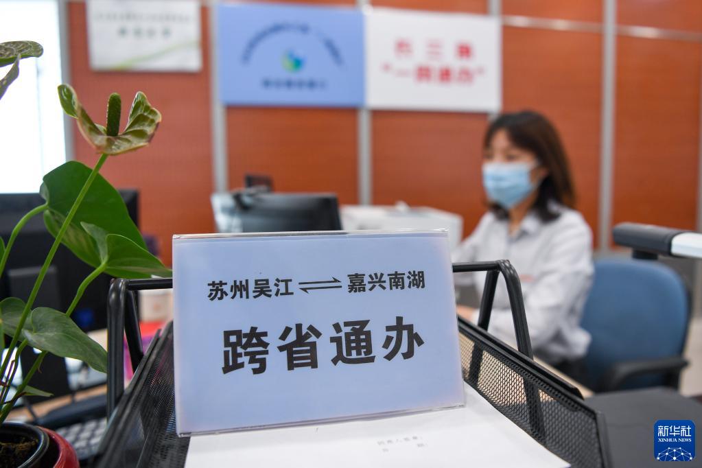 这是江苏省苏州市吴江区政务服务中心长三角“一网通办”服务窗口(2020年5月28日摄)。新华社记者 李博 摄