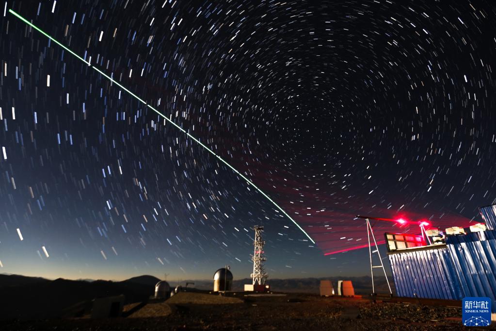 2016年12月9日,“墨子号”量子科学实验卫星与阿里量子隐形传态实验平台建立天地链路(合成照片)。新华社记者 金立旺 摄