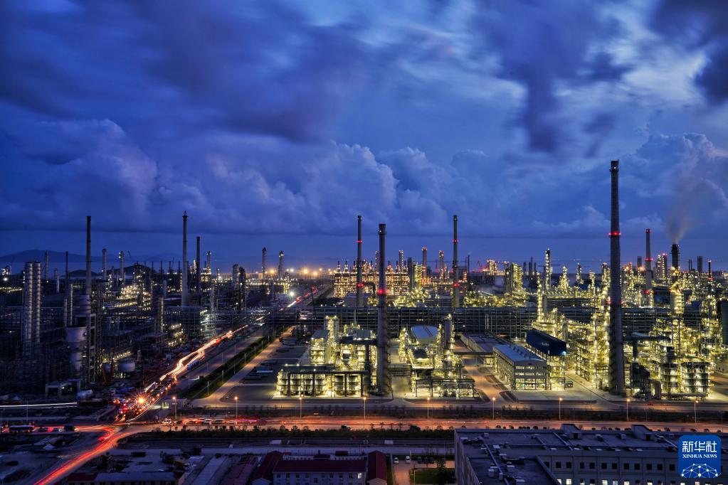 这是夜幕中的浙江舟山鱼山岛绿色石化基地(2020年9月27日摄)。新华社发(张帆 摄)