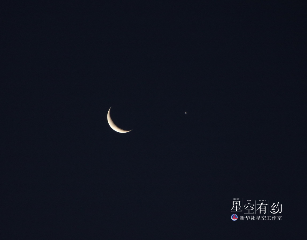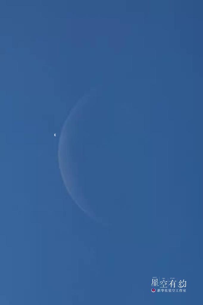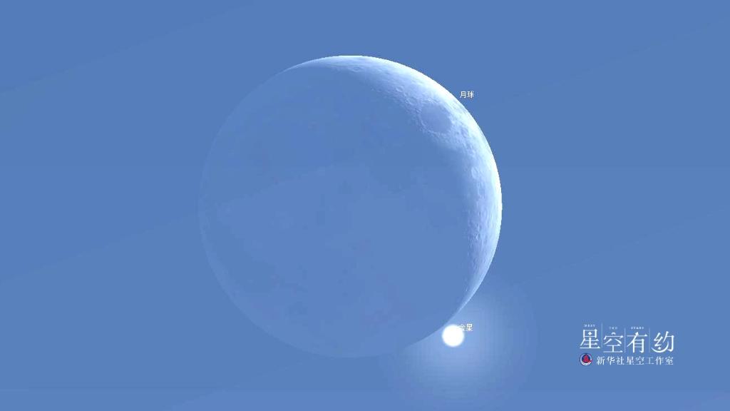 如果天气晴好,当日傍晚,我国各地公众还可以看到角距离非常近的金星合月。“入夜后,朝西南方天空观看,人们可以看到农历十月初四的弯弯蛾眉月伴随着右下方不远处的金星。这两个夜空中最明亮的天体相依相偎,在暮色渐沉的夜空中显得格外醒目,极具画面感。虽然金星合月并不是很罕见的天象,但角距离像这次这么近还是非常值得观赏的。”修立鹏说。