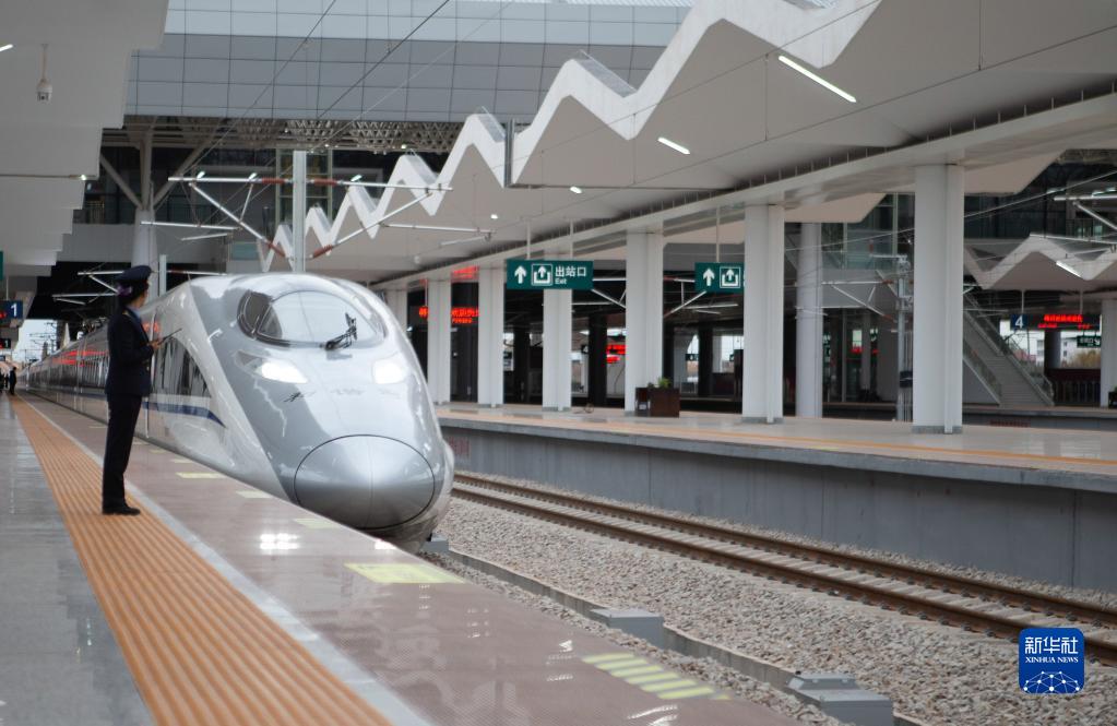 由赣州西站开往南昌西站的G5034次列车准备驶出赣州西站(2019年12月26日摄)。新华社记者 张浩波 摄