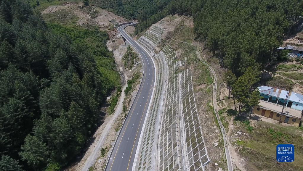 这是2020年7月28日拍摄的巴基斯坦喀喇昆仑公路二期项目曼塞赫拉至塔科特二级公路段。喀喇昆仑公路二期项目将中巴友谊公路向南延伸,融入巴南北交通干线。新华社发(中国交通建设股份有限公司供图)
