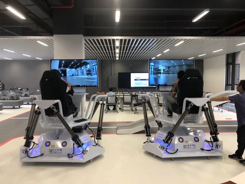 学生利用AR设备在进行模拟驾驶。(华南理工大学供图)