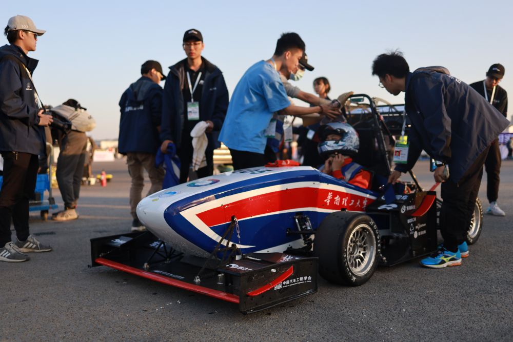 华南理工大学学生亲自设计组装的电车参加2020中国大学生方程式赛事。(华南理工大学供图)