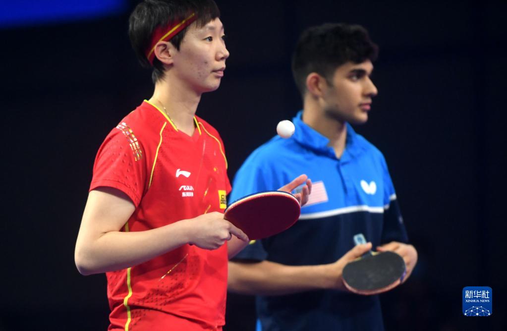 国乒队员林高远搭档美国女队一号主力张安,两人首轮面对葡萄牙组合阿波罗尼亚/邵洁妮,以11:6、11:9、11:7胜出。