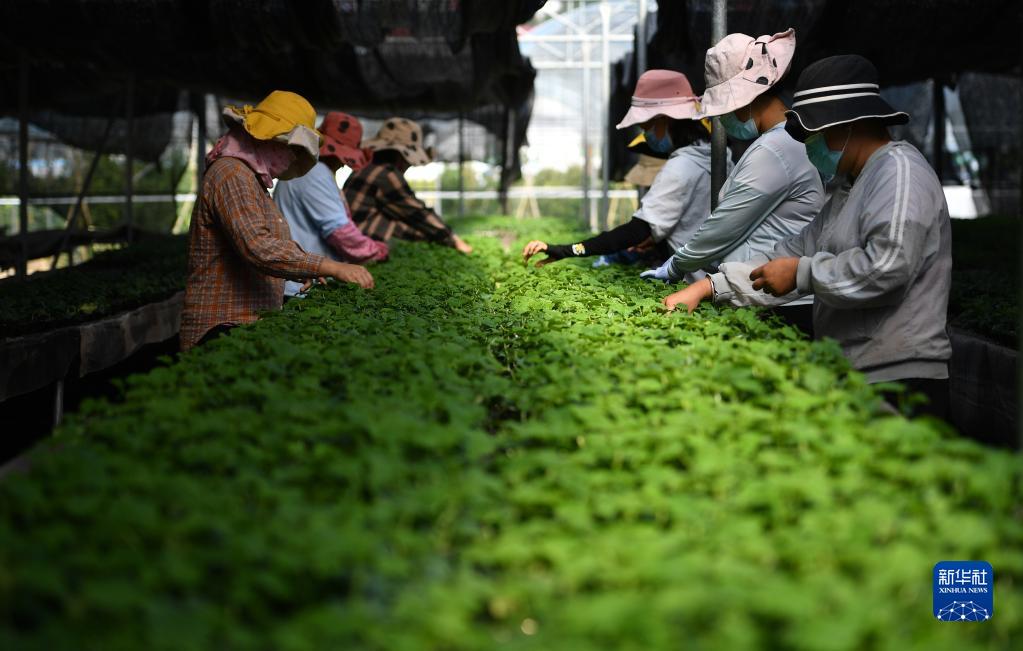 工人在云南元谋现代种业科技园内进行育苗工作(11月15日摄)。新华社记者 王冠森 摄