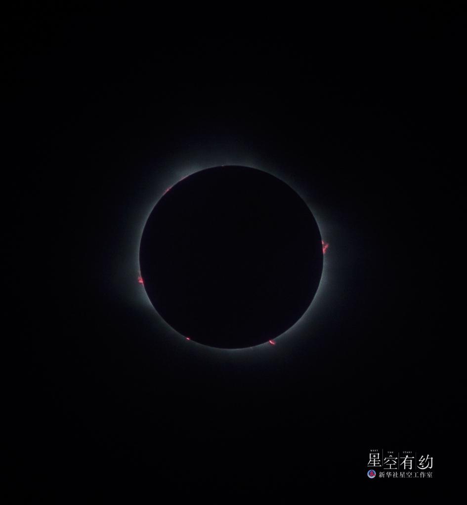 2020年12月14日在智利南部阿劳卡尼亚大区弗雷雷拍摄的日全食。(新华社发)