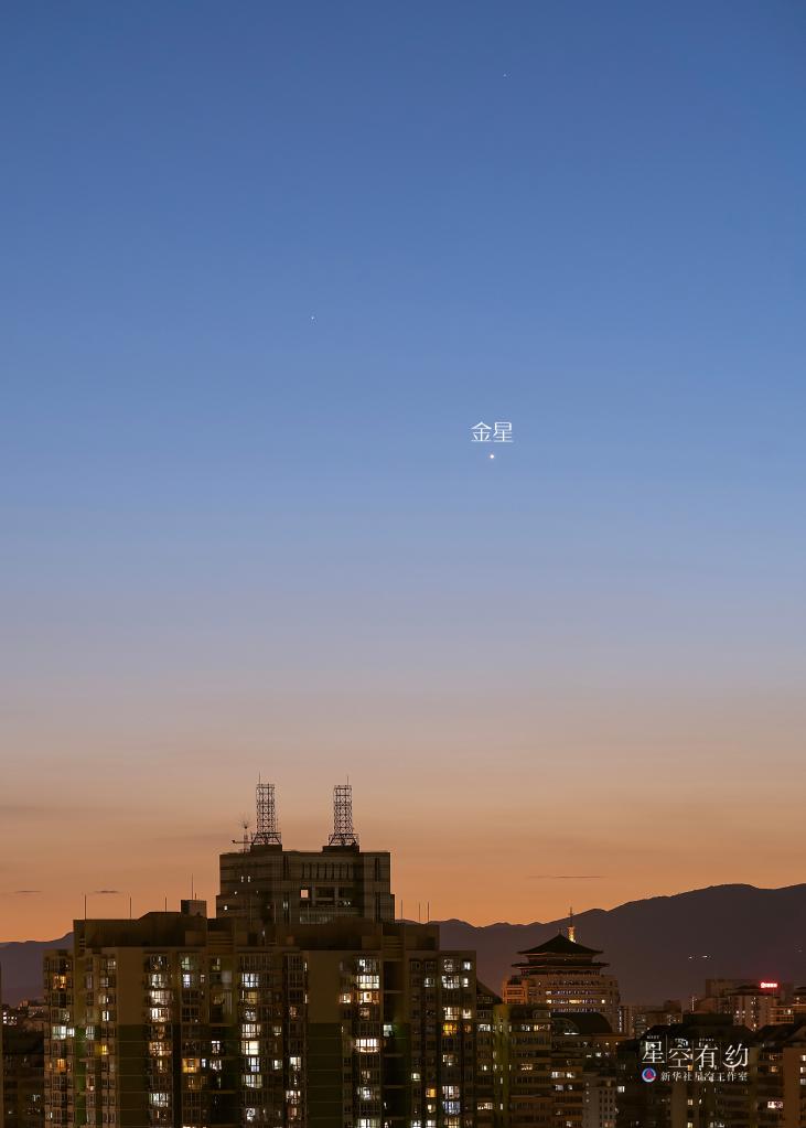 北京市天文摄影爱好者汤波在北京陶然亭附近拍摄的金星和水星。(本人供图)