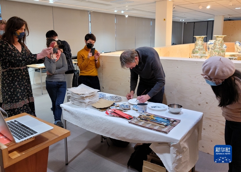 在举办明清瓷器珍品展的同时,海牙中国文化中心还举办了“代尔夫特蓝绘画工作坊”,现场展示瓷器绘画技巧和制作工艺。