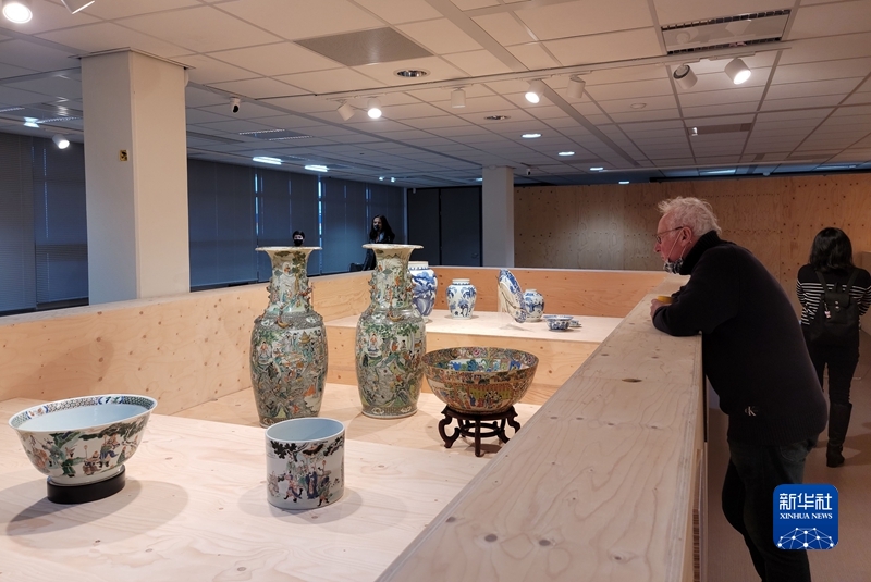 12月3日,人们在荷兰海牙举行的中国明清瓷器珍品展上参观。新华社记者 王湘江 摄