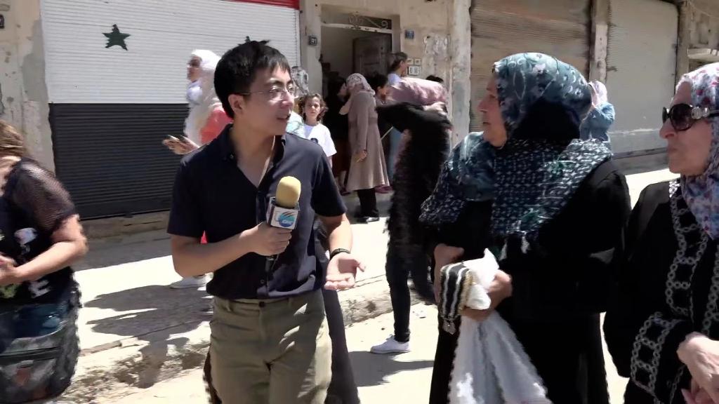 新华社记者在叙利亚采访。