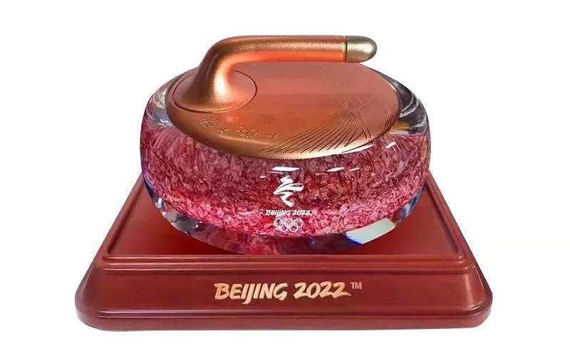 ↑北京冬奥会“手握前程”碎钞摆件(以冰壶为型,内部填充人民币生产过程中产生的非合格品制成的碎钞,体现了绿色办奥的理念,还蕴含“手握前程”“前程似锦”的吉祥寓意)