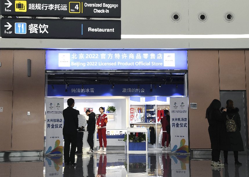 ↑2019年11月27日,北京2022官方特许商品零售店北京大兴机场店正式开业。北京大兴机场店是第一家在机场枢纽开业的北京2022官方特许商品零售店。新华社记者 任超 摄