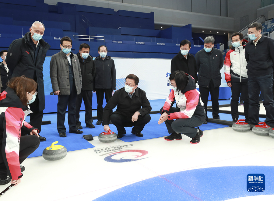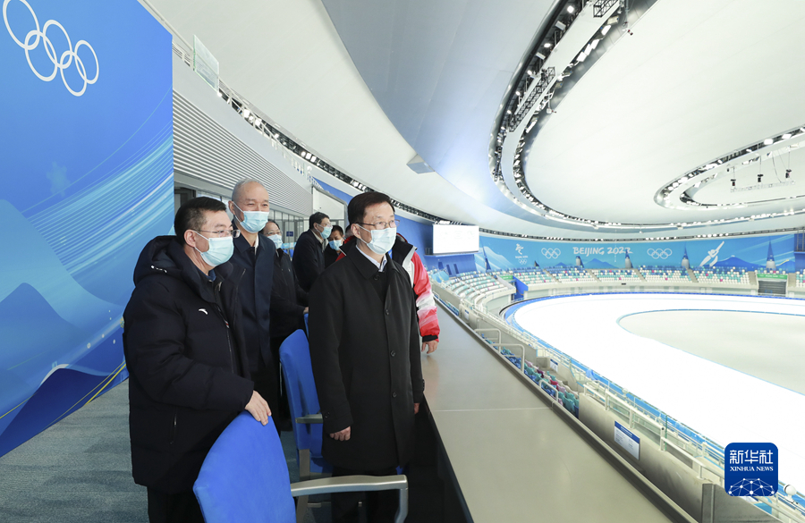 韩正在有“冰丝带”之称的国家速滑馆,观看了“相约北京”系列测试赛汇报视频,并听取场馆建设、赛事筹备、场馆制冰等情况汇报。到国家体育馆,了解场馆布局、功能分区、疫情防控等情况,察看冰球比赛场地、运动员更衣室设施情况。在国家游泳中心,听取“水冰转换”和场馆改造、奥林匹克大家庭接待、赛时场馆景观设置等情况汇报,实地考察冰壶比赛项目,与工作人员亲切交流。韩正表示,北京冬奥会、冬残奥会筹办工作已经进入关键时期,要按规划高质量完成场馆及配套设施建设,扎实做好场馆运行工作,为赛事顺利举办提供有力支撑。要认真研究冬奥场馆赛后利用,把举办重大赛事同服务全民健身结合起来,推动冰雪运动普及发展。