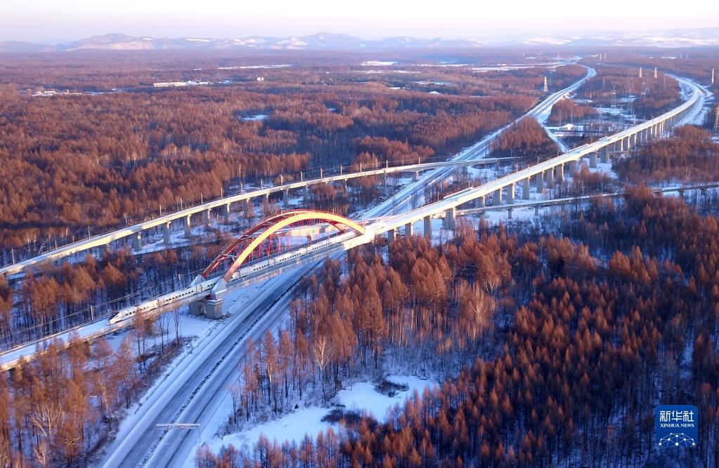 新华社长春12月24日电(记者段续、邵美琦)12月24日,沈阳至佳木斯高铁长白山至敦化段开通运营,复兴号高速动车组驶入长白林海,长白山正式迈入高铁时代。长春至长白山最快2小时18分钟可达,从北京乘高铁抵达长白山最快只需7.5小时,极大方便各地冰雪运动爱好者前往长白山体验优质冰雪资源。