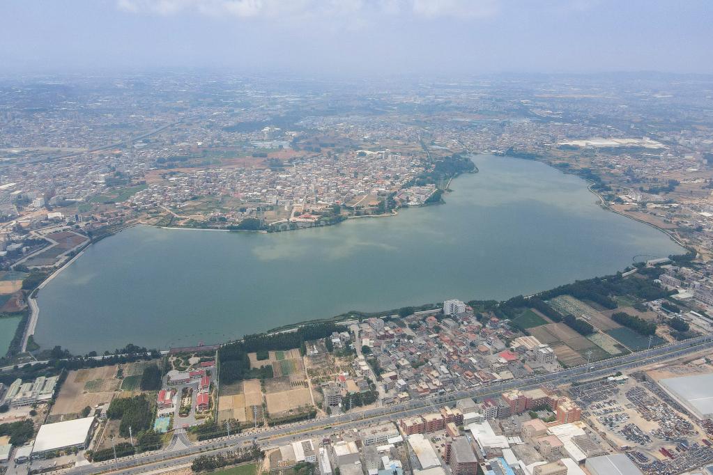 这是福建向金门供水工程取水地——晋江龙湖(2021年4月13日摄,无人机照片)。新华社发(赖进财 摄)