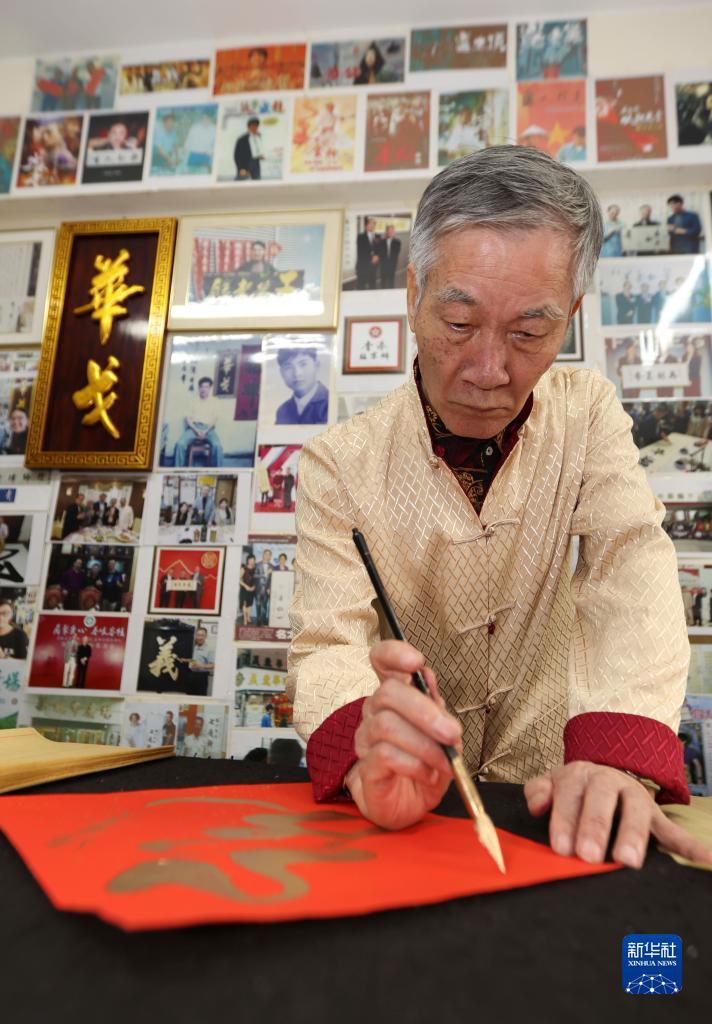 华哥在写挥春(1月11日摄)。新华社记者 万后德 摄