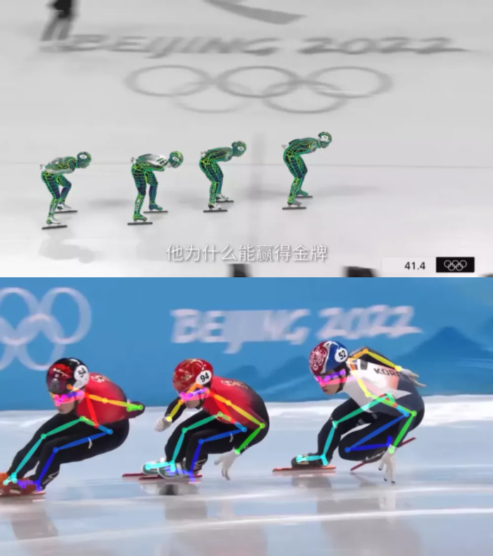 图为“小诤看冬奥”报道产品。它利用计算机视觉对北京冬奥会短道速滑男子1000米竞赛中运动员的姿态进行分析,回答了“中国为什么赢得金牌”这一问题。