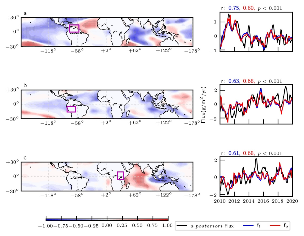 研究人员利用日本温室气体监测卫星的甲烷观测数据和地面甲烷浓度观测数据,结合碳同化模型采用天地一体化新方法,首次发现,海温变化与南美热带地区和非洲中部的甲烷排放变化之间存在强的季节相关性。