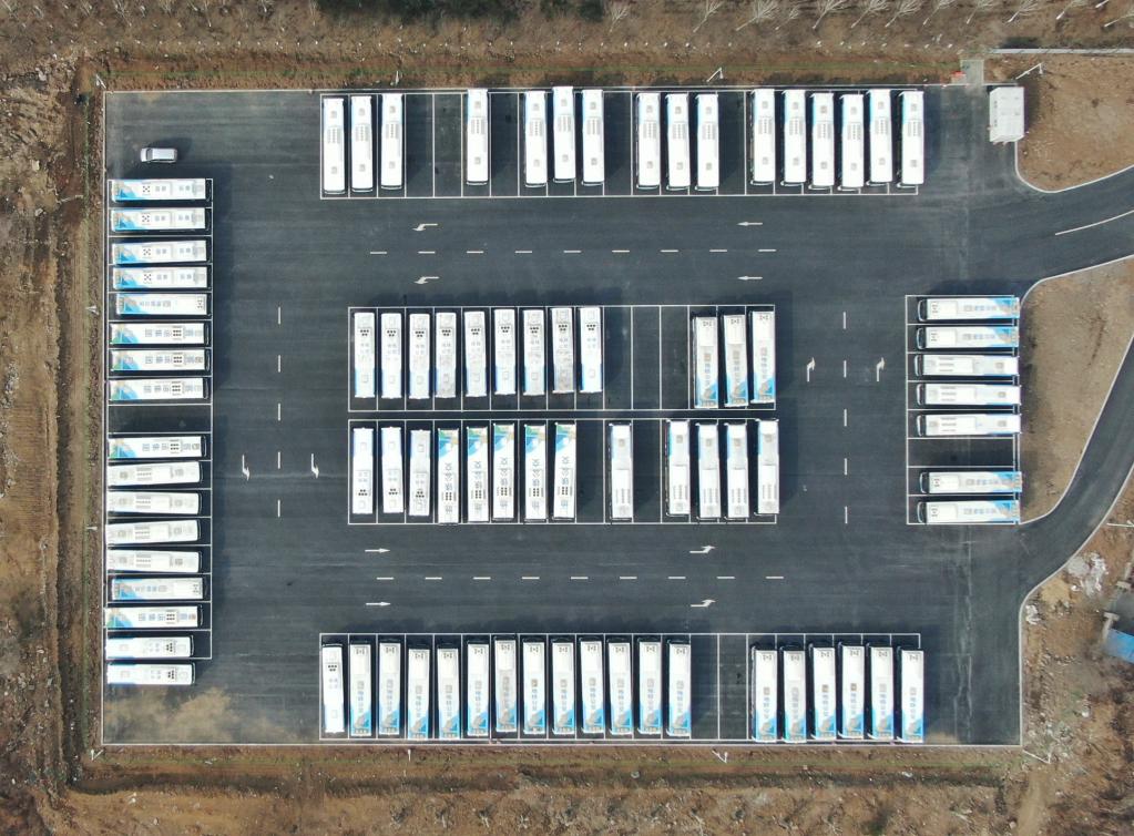 3月24日,沈阳公交系统暂停,这是在沈阳公交车停车场拍摄的公交(无人机照片)。新华社记者杨青 摄