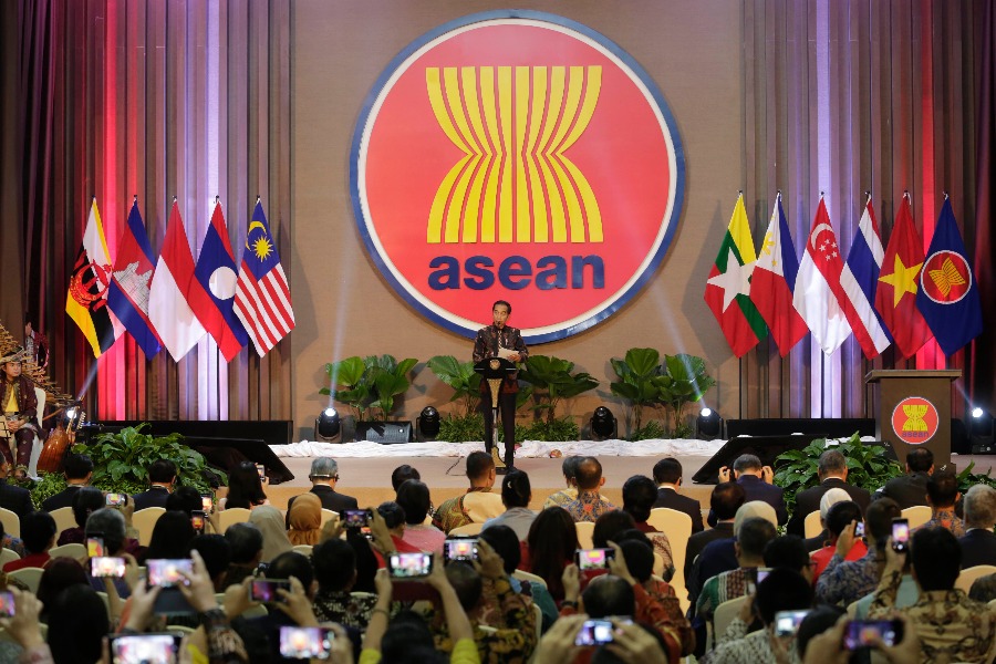 图为2019年8月8日的资料照片,在印度尼西亚首都雅加达,印尼总统佐科在东盟秘书处新大楼落成典礼上讲话。(新华社发,印度尼西亚外交部供图)