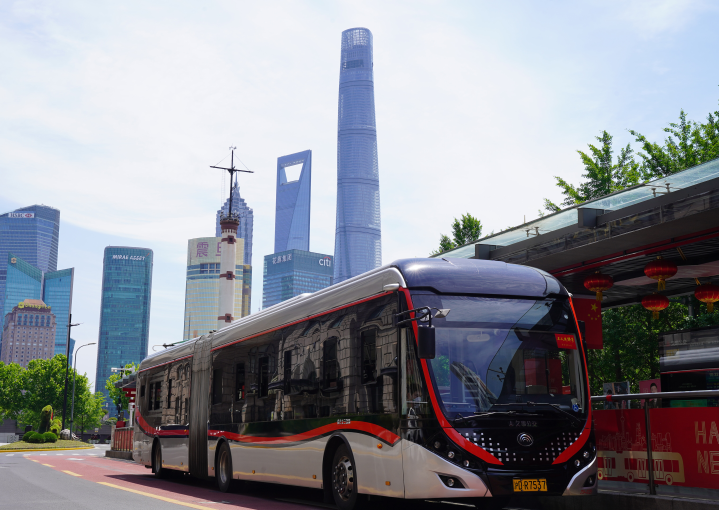 5月22日,一辆71路公交车停靠在延安东路外滩站。新华社记者 王辰阳 摄