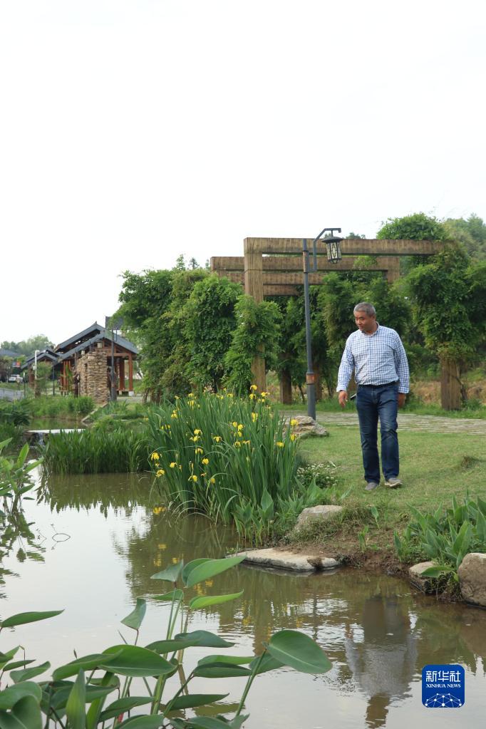 欧阳鹏在清溪村漫步(4月24日摄)。新华社记者 丁春雨 摄