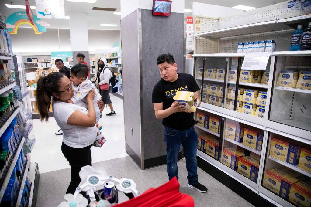 5月24日,人们在美国纽约市布鲁克林区的一家超市选购婴幼儿奶粉。(新华社发,郭克摄)