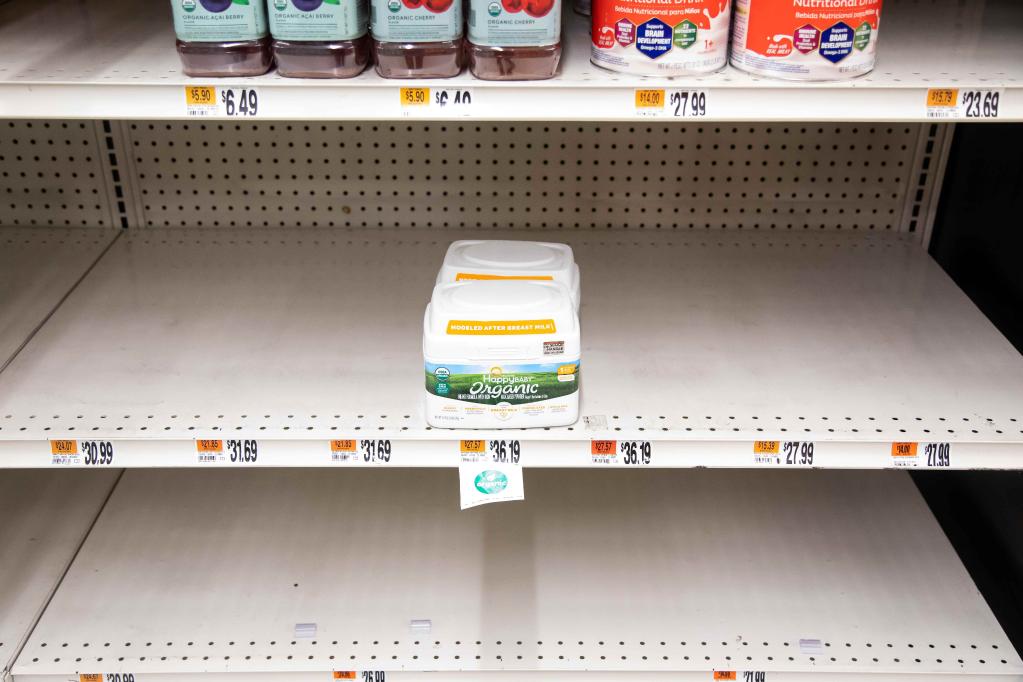 5月24日,在美国纽约市布鲁克林区,一家超市的婴幼儿奶粉货架出现缺货。(新华社发,郭克摄)
