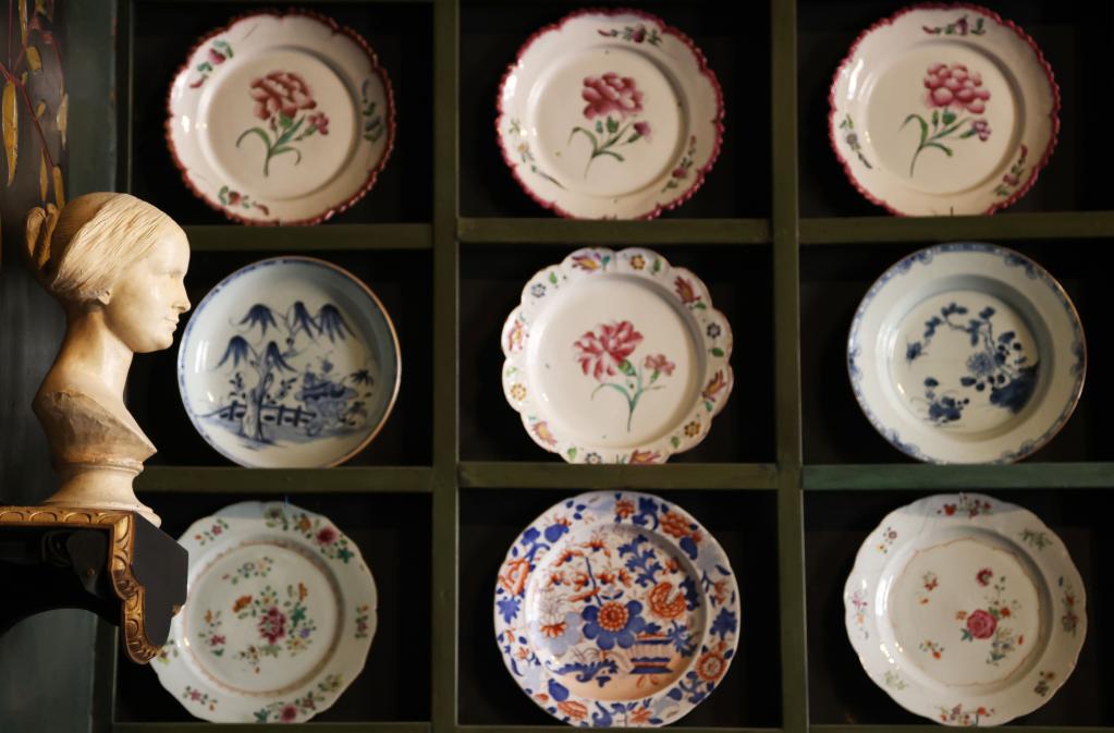 这是6月14日在位于法国巴黎的雨果故居拍摄的“中国客厅”内的瓷器。新华社记者高静摄