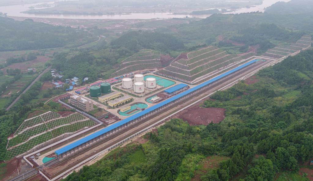 这是6月27日拍摄的成渝铁路庙子沟站(无人机照片)。新华社记者 薛晨 摄