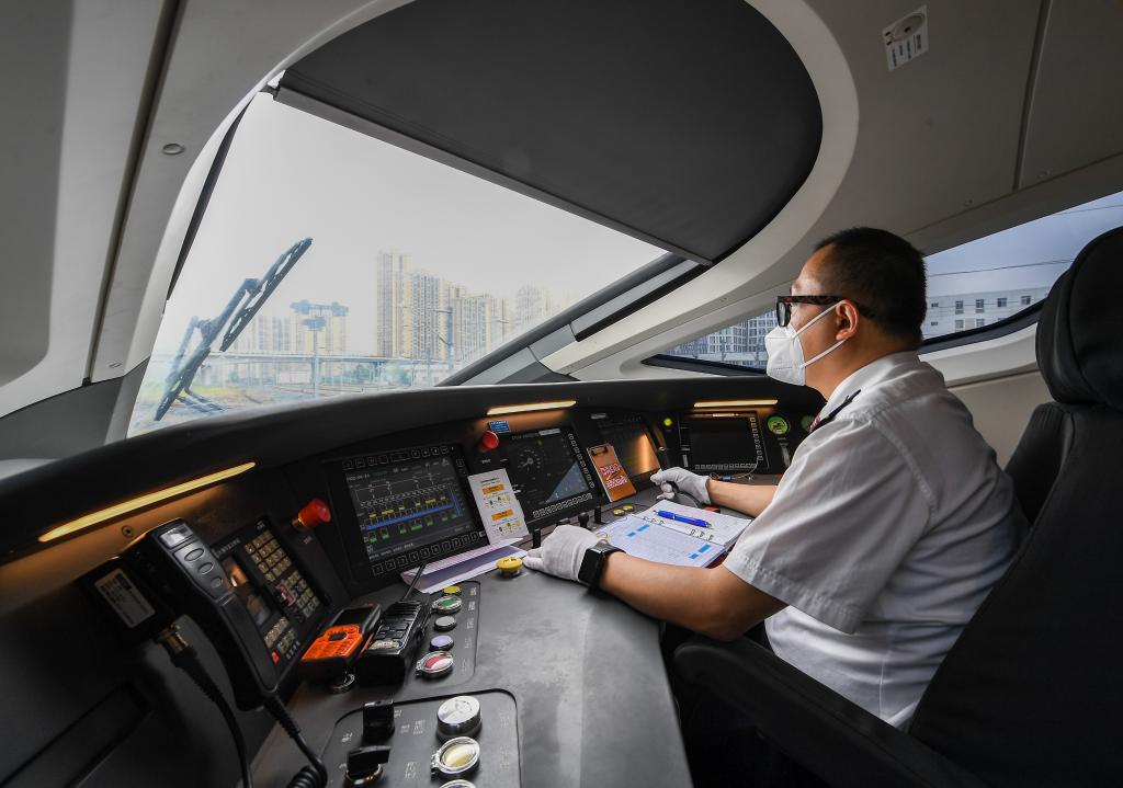 6月24日,李治刚驾驶复兴号动车组由成都东站开往重庆沙坪坝站。新华社记者 王曦 摄
