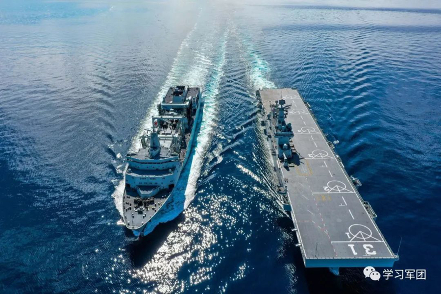 2018年,井冈山舰随编队参加远海训练,创造多项新纪录。