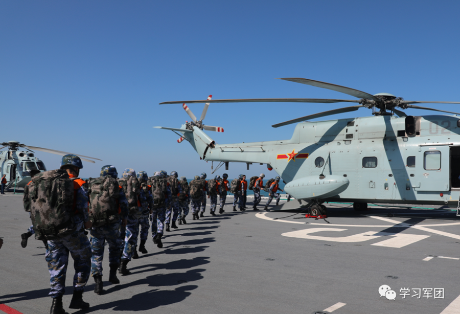 检验成果那天,多批多架次舰载直升机从海南舰甲板上腾空而起,标志着海南舰初步形成垂直投送能力。