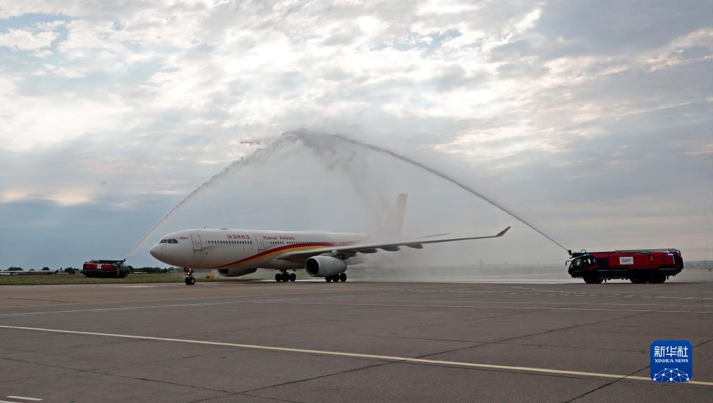 7月16日,直航航班飞抵塞尔维亚贝尔格莱德机场。新华社发(普雷德拉格·米洛萨夫列维奇摄)