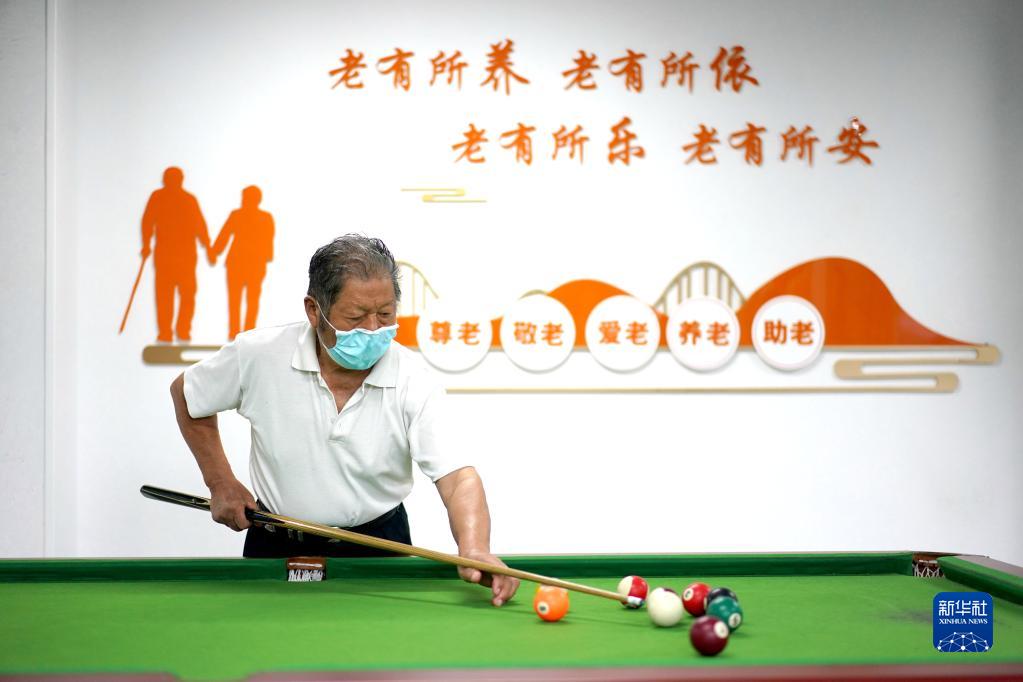 江苏省张家港市永联村的村民在打台球娱乐(2022年7月16日摄)。新华社记者 季春鹏 摄