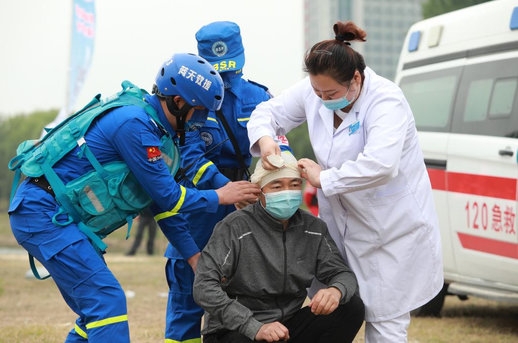 2022年5月12日,安徽省淮北市相山区举行综合减灾应急演练。新华社发(万善朝 摄)