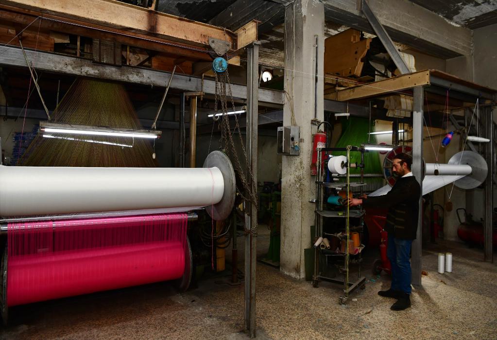 3月7日,一名叙利亚纺织工作者在阿勒颇卡塔尔基工业区的一间厂房内工作。(新华社发,阿马尔·萨法尔贾拉尼 摄)
