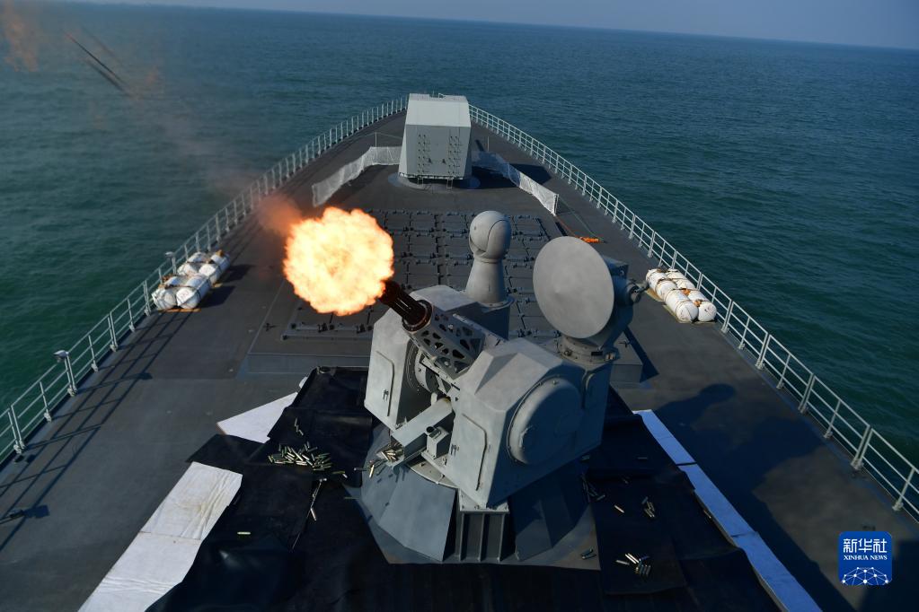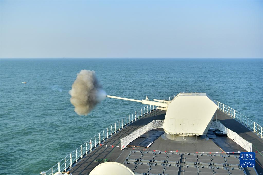 南昌舰组织主炮对海射击演练(2022年3月21日摄)。新华社发(杜江帆 摄)