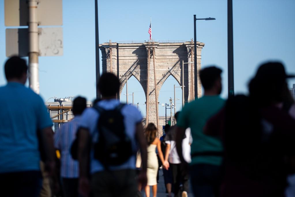 5月12日,美国纽约布鲁克林大桥降半旗悼念新冠逝者。新华社发(郭克摄)