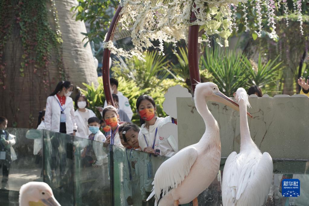 两岸“和平小天使”在厦门灵玲动物王国参观(2021年12月4日摄)。新华社发