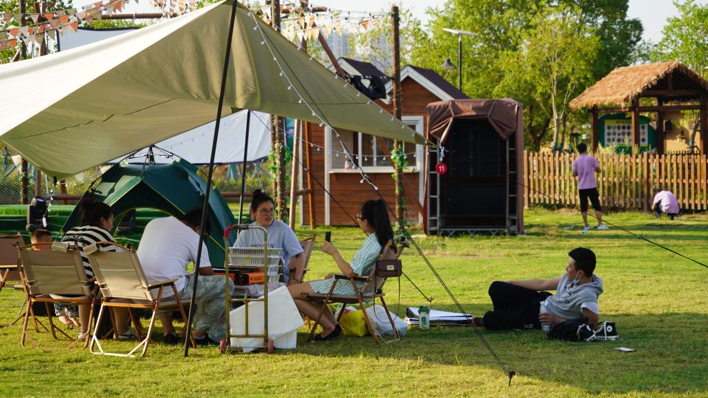 游客在武汉花博汇景区露营。新华社记者 熊翔鹤 摄