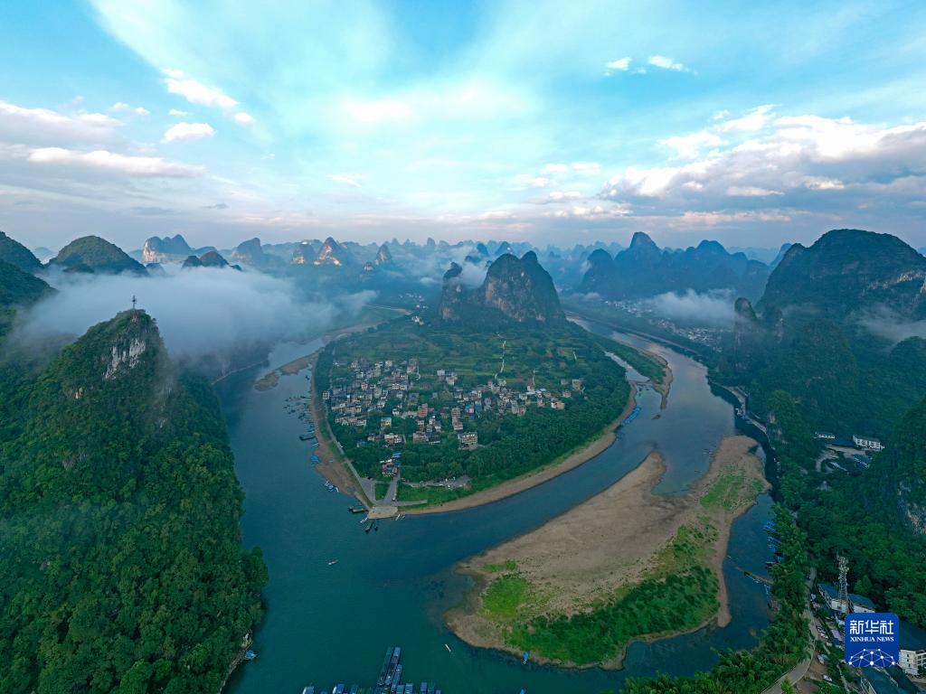 这是在广西阳朔县兴坪镇拍摄的漓江风光(2022年8月25日摄,无人机照片)。新华社记者 周华 摄