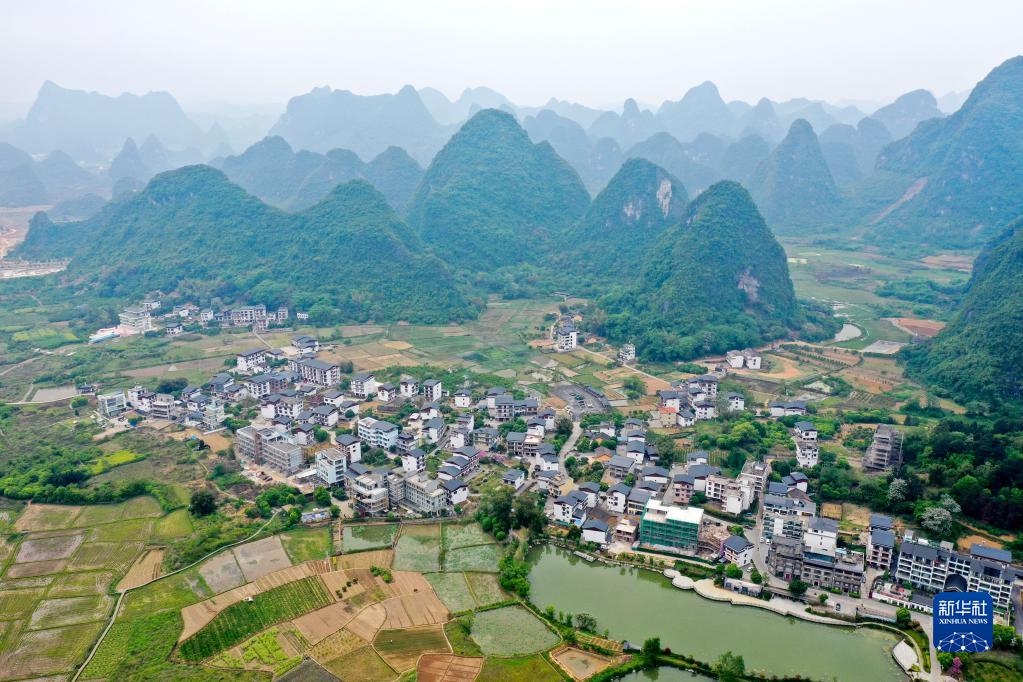 这是漓江支流遇龙河畔的“网红村”——桂林市阳朔县阳朔镇鸡窝渡村(2022年4月12日摄,无人机照片)。新华社记者 周华 摄