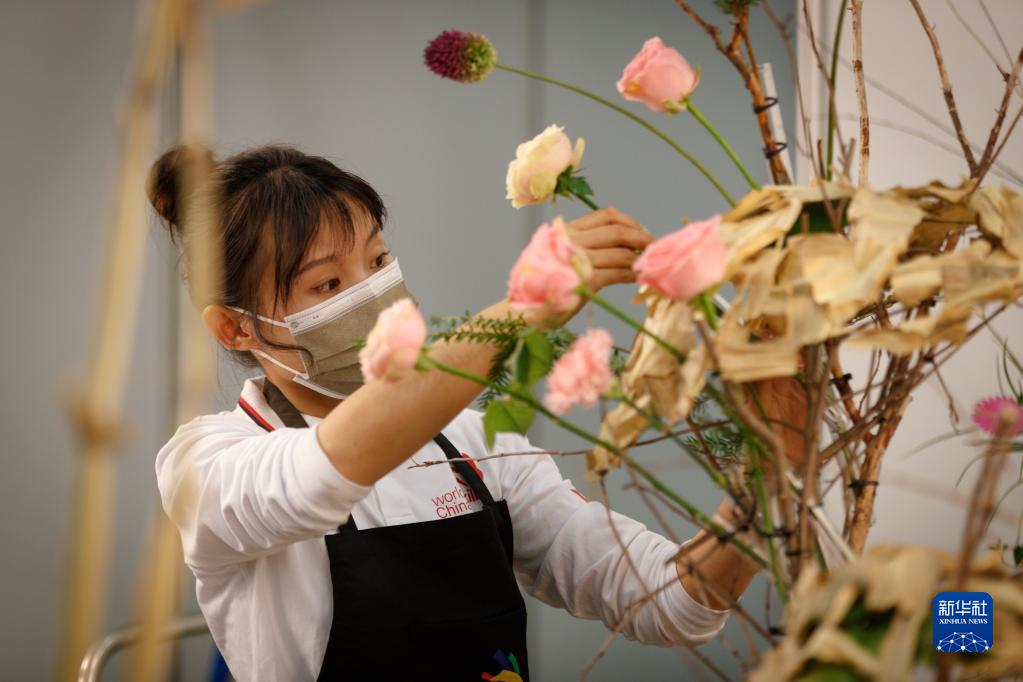 10月23日,获花艺项目优胜奖的上海农林职业技术学院杨灵芝在芬兰首都赫尔辛基参加2022年世界技能大赛特别赛芬兰赛区比赛。新华社发(卡勒·帕尔基宁摄)